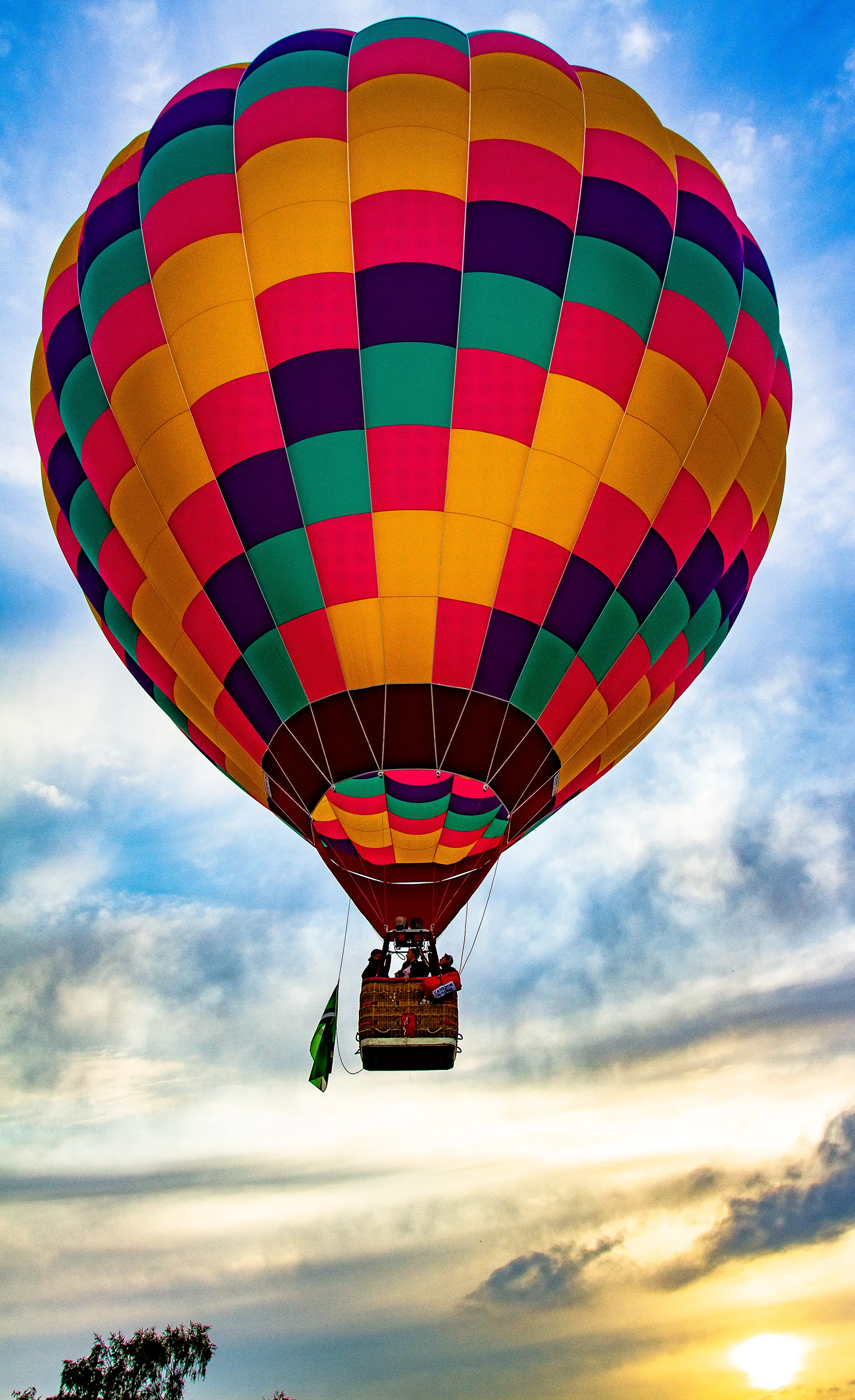 Onze prachtige felgekleurde ballon voor 3 tot 5 passagiers is een pareltje in de lucht. Deze ballon hebben wij sinds 2022.